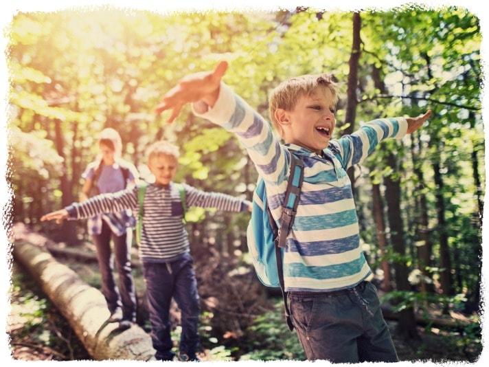 - Before you start, take a minute to stand still and be present in the moment–noticing your surroundings with all five of your senses. Take some slow, intentional breaths, feel the ground beneath you, notice the temperature outside, listen to the birds, etc.