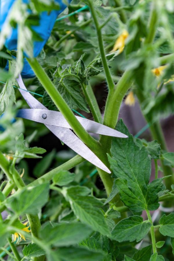 Last but not least, don’t be afraid to prune your tomato plants a bit to help them stay strong and keep them under control. We prune up underneath all of our plants 12 to 18 inches. It makes watering easier and allows for better airflow. See: How To Prune Tomato Plants With Ease