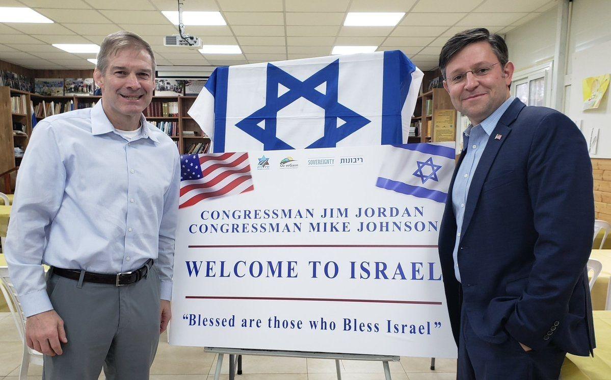 “The first bill I’m going to bring to this floor in a little while will be in support of our dear friend Israel and we are overdue in getting that done,” Johnson said as he accepted the speakership. (Source.)
