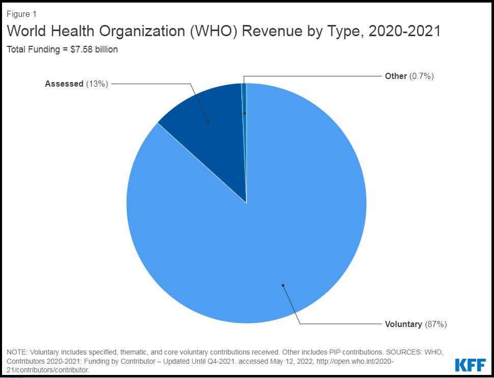 Only 13% of the WHO budget comes from assessed contributions, which are set amounts paid by member-state governments, scaled by income and population, of which the United States is the largest donor.